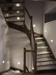 Da heute die Malerarbeiten im Treppenhaus abgeschlossen wurden, konnte ich eben noch schnell alle Leuchten einbauen und anschließen…